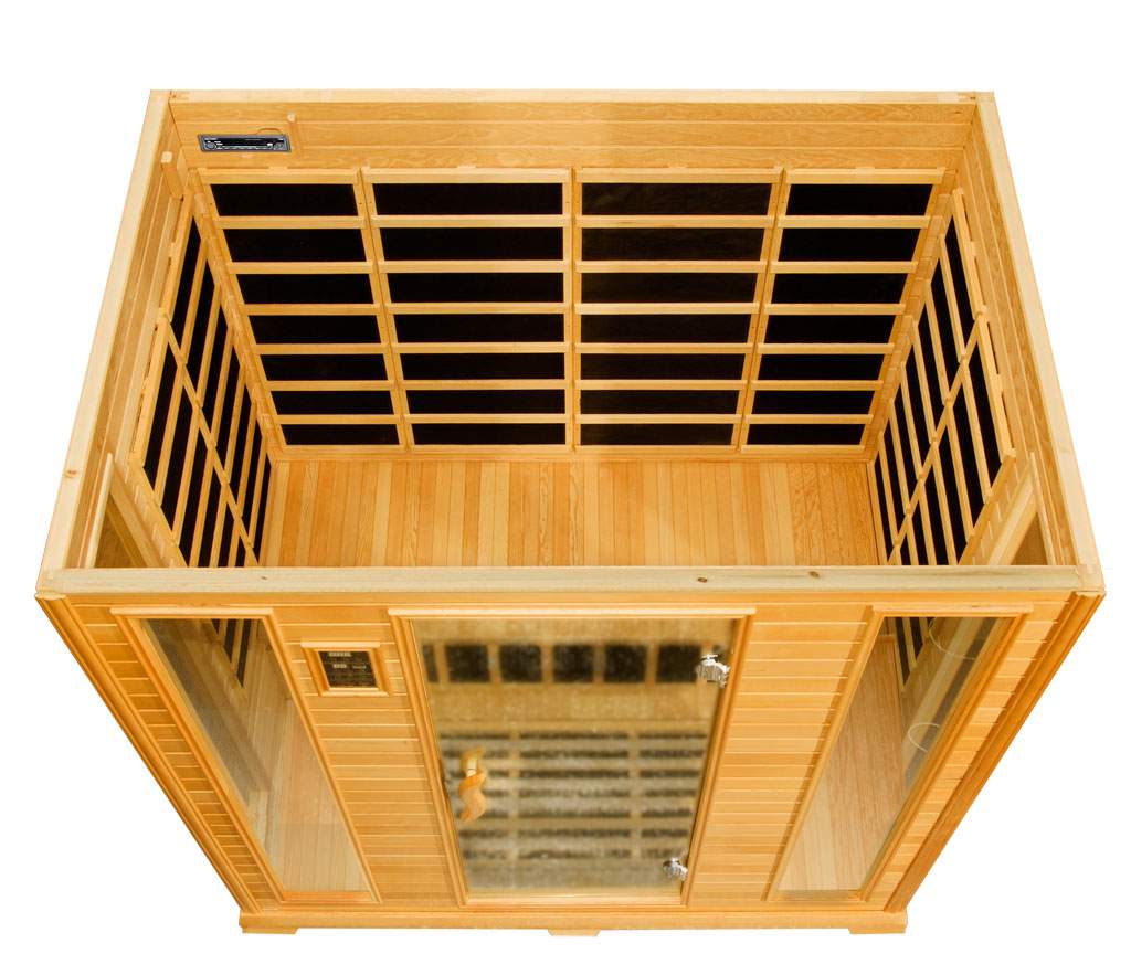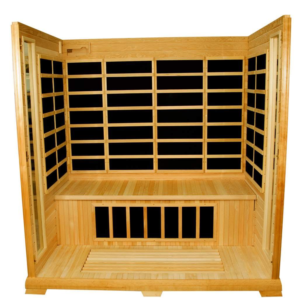 Компактная комнатная сауна Grande — это корпус из хэмлока (канадского хвойного дерева) и десять инфракрасных нагревателей. Экологически чистая порода без дефектов отличается высокой прочностью и долговечностью. Оптимальная температура внутри кабины достигается за короткое время, при этом корпус остается достаточно прохладным. Общая мощность нагревателей составляет 2300 Вт. В большом доме и квартире сауна займет совсем немного места и не потребует подключения дополнительной вентиляции.