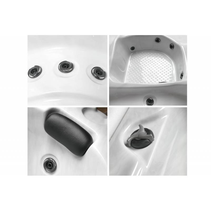 Это ванна с автономным подогревом воды, гидромассажными и аэромассажным форсунками, как правило сделанная из толстого акрила. Гидромассажные спа бассейны полезны для здоровья . Их можно использовать зимой на улице.